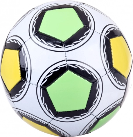 Ein bunter Fußball der Größe 9 Zoll (22,86 cm), entworfen für Spaß auf Außen- und Innenfeldern. Hergestellt aus synthetischem Leder mit glänzender Oberfläche und maschineller Naht.