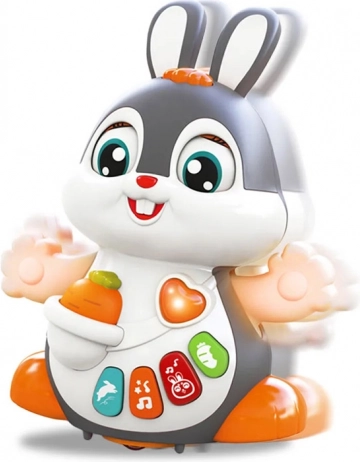 - Musik und Licht: Das Häschen tanzt zu fröhlichen Liedern und blinkt mit bunten Lichtern, was die Sinne des Kindes anregt und Spaß bringt.