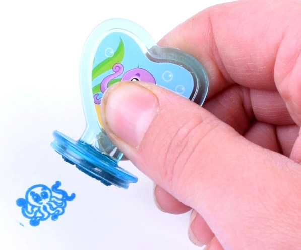 Entdecken Sie ein unterhaltsames Stempelset mit Meeresmotiven – ideal für Kinder in Schule und Zuhause. Jeder Stempel ist mit Tinte vorgefüllt, hat eine robuste Kunststoff-Ausführung und ist leicht zu benutzen. Einfach andrücken und es entstehen klare Abdrücke von Oktopus, Delfin, Seepferdchen, Krabbe, Hummer und Seestern.