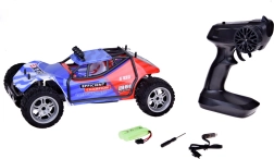 Die ergonomische Pistolenfernsteuerung mit präzisem Abzug ermöglicht sanftes Anfahren, Bremsen und Lenken. Die 2,4 GHz Frequenz erlaubt das gleichzeitige Fahren mehrerer Autos.