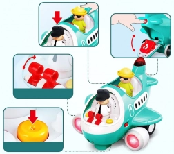 Im Lieferumfang sind zwei Figuren enthalten – Pilot und Passagier –, die im Cockpit bzw. in der Kabine Platz nehmen können. Im hinteren Teil des Flugzeugs befindet sich ein öffnbarer Laderaum mit rotem Knopf und herausnehmbarem Köfferchen für ein noch realistischeres Spiel. Dank der zweistufigen Lautstärkeregelung lässt sich das Spiel leicht an die Umgebung und empfindliche Öhrchen anpassen.