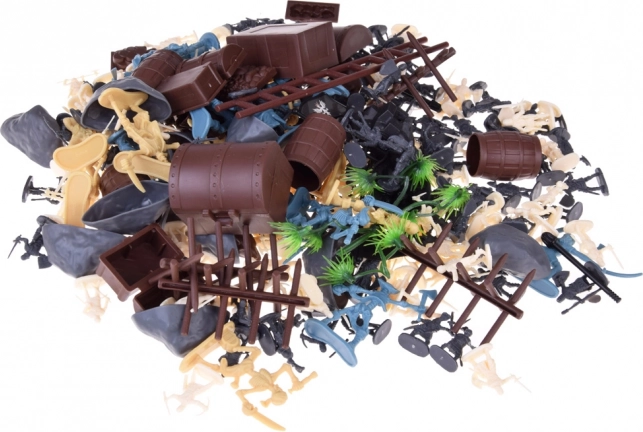 Die große Anzahl an Elementen im Set erlaubt das Erstellen strategischer Pläne, fördert Kreativität und strategisches Denken. Die Figuren sind aus Kunststoff in Armeefarben gefertigt.
