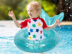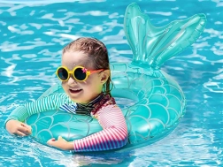Die türkise Farbe und das Schuppenmuster fallen am Strand wie auch am Pool auf und motivieren Kinder zu aktiver Bewegung im Wasser.