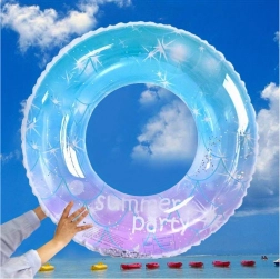 Stylischer aufblasbarer Kinder-Schwimmring mit transparenter Ausführung und glitzerndem Konfetti innen ist der Sommerhit für Pool und Strand. Leicht, kompakt und geeignet für Kinder ab 3 Jahren. Der Durchmesser von 80 cm sorgt für komfortablen Auftrieb und großen Wasserspaß.