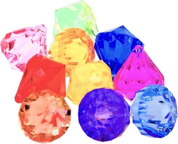 Das Set enthält 17 bunte, facettierte Kristalle in verschiedenen Formen und Größen, die Kinder wie Erwachsene begeistern und sich hervorragend zum Angeln im Wasser oder für Piratenspiele eignen.