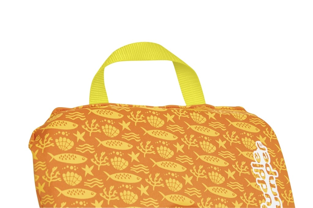 Der integrierte hintere Griff ermöglicht es, das Kind bei Bedarf schnell festzuhalten oder aus dem Wasser zu ziehen.