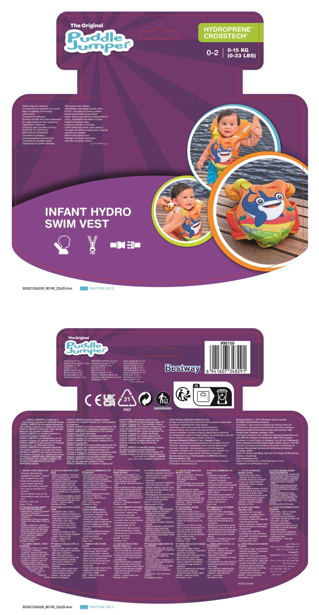Diese Baby-Schwimmweste Puddle Jumper wurde für maximalen Komfort und die Beruhigung der Eltern entwickelt. Weiches, atmungsaktives Material und eine Schaumkonstruktion sorgen für angenehmen Tragekomfort, während kontrastreiche, auffällige Farben die Sichtbarkeit des Kindes am Wasser erhöhen.