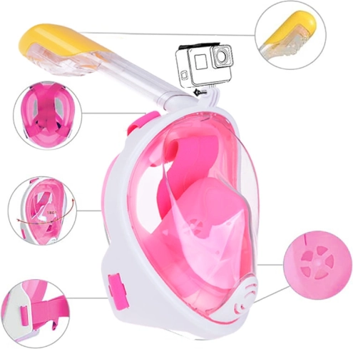 Entdecken Sie mühelos die Schönheiten der Unterwasserwelt mit der Vollgesichts-Schnorchelmaske. Diese innovative Maske bietet ein 180° weites Sichtfeld und einfaches Atmen dank getrennter Kanäle für Ein- und Ausatmung.