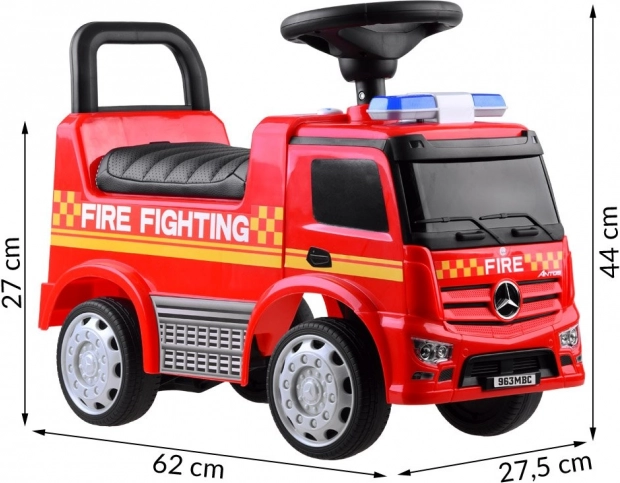 Geben Sie Ihrem Kind Spaß und Sicherheit mit diesem lizenzierten Mercedes Laufwagen in Form eines Feuerwehrwagens. Hergestellt aus hochwertigem Kunststoff, bietet er außergewöhnliche Haltbarkeit und Farbbeständigkeit. Dank des bequemen Sitzes mit Rückenlehne ist die Fahrt nicht nur komfortabel, sondern auch sicher. Ein Blockierungsmechanismus verhindert das Umkippen nach hinten.