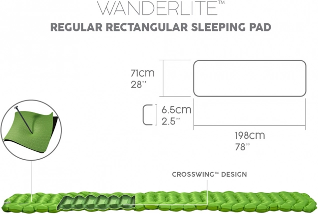Die durchdachte CrossWing-Konstruktion mit angewinkelten Luftkammern hält den Körper stabil in der Mitte und hilft, ein Abrutschen zu verhindern. Das Niedrigprofilventil ermöglicht schnelles Auf- und Abpumpen und eine einfache Druckregulierung für die ideale Härte nach Ihren Vorlieben.