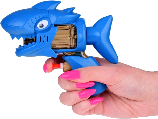 Diese blaue Wasserspritzpistole in Hai-Form besteht aus glattem, angenehm anzufassendem Kunststoff, der für Kinder sicher ist. Dank der kompakten Maße liegt sie auch in kleinen Händen gut und ist ideal für heiße Tage, Feiern und das Oster-Anspritzen.