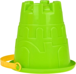 Im Set finden Sie einen Eimer, eine Gießkanne, eine Schaufel, eine Harke und 4 glatte Formen in Gestalt eines Hubschraubers, eines Autos, eines Segelbootes und eines Dampfschiffs.