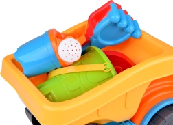 Entdecken Sie das unterhaltsame Strandset mit einem großen Kipplaster, das alles für kreatives Spielen im Sand enthält: geräumigen Kipplaster, Formen, Eimer, Gießkanne, Schaufel und Harke. Dank der robusten Räder bewegt sich das Fahrzeug leicht auf verschiedenen Oberflächen und sorgt für stundenlangen Spaß am Strand, auf dem Spielplatz oder in der Badewanne.