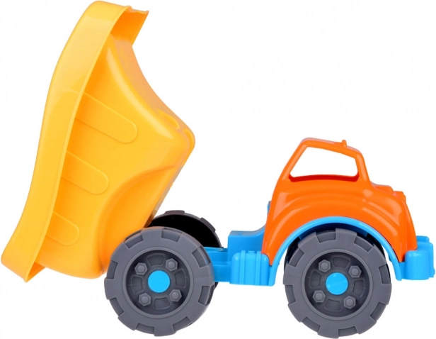 Die geräumige Mulde ermöglicht Kindern, Sand, Kieselsteine oder Spielzeug leicht zu laden und abzukippen und noch größere Burgen zu bauen.