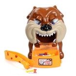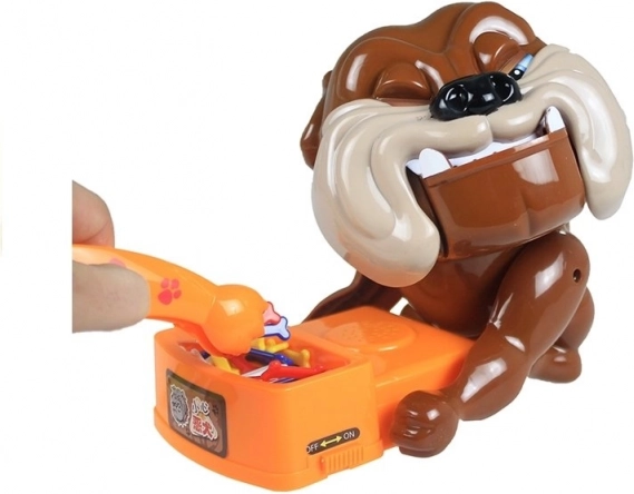 Nehmen Sie die Knochen aus dem Napf, aber passen Sie auf, den Hund nicht zu wecken, denn er ist sehr wütend! Alles, was Sie tun müssen, ist, den wütenden Hund für das Spiel vorzubereiten. Setzen Sie dazu die Batterien ein (nicht im Lieferumfang enthalten) und spannen Sie ihn, bis er seinen Kopf auf die linke Pfote legt und die Augen schließt. Das Spiel beginnt mit dem jüngsten Spieler – er wählt einen Knochen aus und versucht, ihn mit der beiliegenden Pinzette herauszunehmen. Wenn der Hund aufwacht, scheidet der Spieler aus dem Spiel aus. Um das Spiel fortzusetzen, muss der Bulldogge wieder zum Schlafen gebracht werden. Das Spiel geht weiter, bis nur 1 Spieler übrig bleibt, den der Hund nicht gebissen hat – dieser Spieler ist der Gewinner.