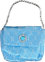Stilvolle blaue Tasche mit elegantem Silbermuster und herzförmiger Verzierung. Hervorragend für sowohl informelle als auch formelle Anlässe.