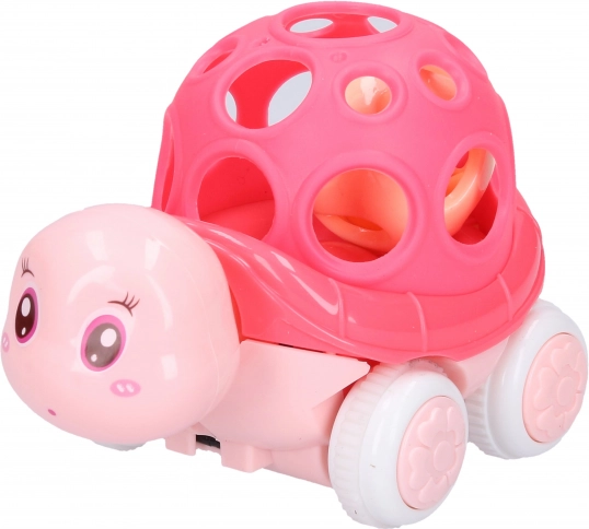 Vier Farbvarianten, die Kinder bezaubern: Blau, Orange, Grün und Rosa. Die Schildkröte ist aus robustem Kunststoff gefertigt, was eine lange Lebensdauer garantiert. Dank des Schwungrad-Antriebs bewegt sich die Schildkröte leicht über den Boden und bietet Kindern so eine zusätzliche Schicht an Spaß.