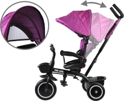 Dieses multifunktionale Dreirad vereint die Vorteile eines Kinderwagens, Laufrads und klassischen Dreirads. Dank des drehbaren Sitzes kann das Kind sowohl zur Bezugsperson als auch in Fahrtrichtung sitzen. Weiche Polsterung, Fünfpunktgurte und ein abnehmbarer Sicherheitsbügel bieten maximalen Komfort und Sicherheit.