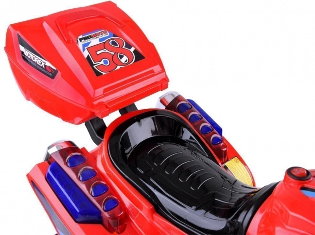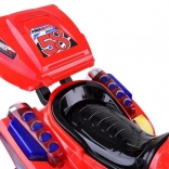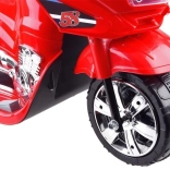 Die Bedienung ist kinderleicht: Start per ON/OFF-Taste mit realistischem Motorsound, Gas über das Pedal und automatische elektrische Bremse beim Loslassen des Pedals. Kinder freuen sich über fröhliche Melodien, Seitenspiegel, klaren Windabweiser und das nützliche Topcase für Kleinigkeiten.