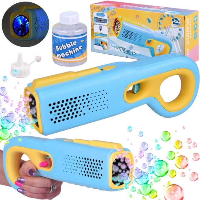 Lustige Seifenblasen-Pistole für Kinder erzeugt mit einem Druck auf den Auslöser bunte Blasen. Robuster Kunststoff, einfaches Nachfüllen und lange Unterhaltung im Freien und auf Partys. Inklusive Flasche mit Lösung für den sofortigen Einsatz.