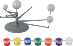 - Ständer mit Armen, Planeten zum Zusammenbauen, Farben, Pinsel, Ringschablone für Saturn, Anleitung