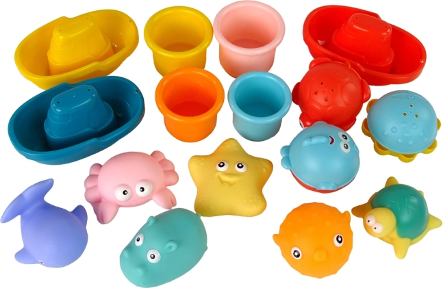 Entdecken Sie den Zauber des Badens mit einem farbenfrohen Set an Meerestieren, das jedes Bad in ein Spiel verwandelt. Kinder können die Tiere mit dem Netz fangen, die Boote auf der Wasseroberfläche treiben lassen und mit den Gummifiguren Wasser spritzen. Angenehme Pastellfarben und vielfältige Formen regen die Fantasie an, während das weiche Material sanft zu kleinen Händen ist.