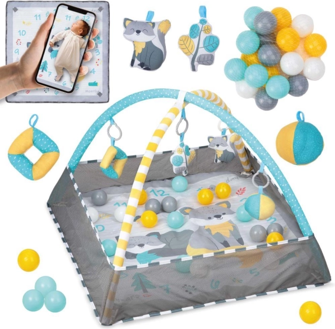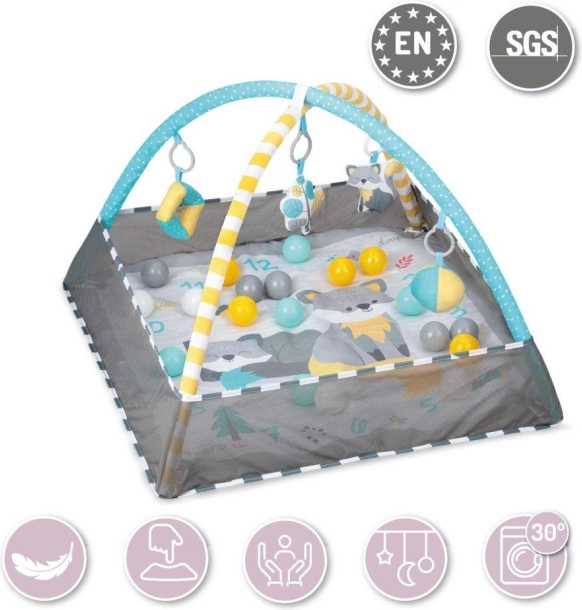 Die Lernmatte MoMi LAMMIS ist eine fantastische 4-in-1-Lösung! Sie erhalten nicht nur eine Lernmatte, sondern auch einen Laufstall, ein Bällebad und eine Fotomatte! Die Lernmatte verfügt über ein starkes wärmeisolierendes Material, wodurch Ihr Kleinkind nicht nur bequem, sondern auch warm liegt! Unterschiedliche Spielzeuge helfen Ihrem Kind, Fähigkeiten zu entwickeln und die Sinne zu stimulieren.