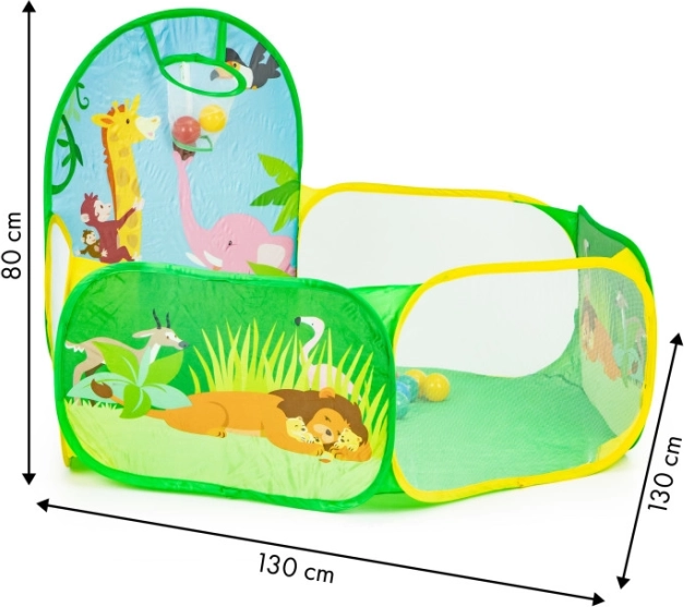 Im Lieferumfang sind 50 Kunststoffbälle (Ø 6 cm) enthalten, die endlosen Spaß garantieren und das Zelt in ein Trockenballbad verwandeln.