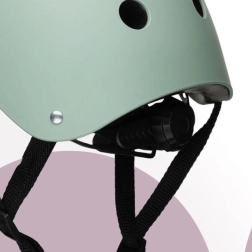 Leichter und sicherer MoMi MIMI Kinderhelm in mattem Grün, schützt beim Fahren mit Fahrrad, Laufrad, Roller und Inlineskates. Bietet eine robuste ABS-Außenschale, innere EPS-Schicht, Umfangseinstellung 48–55 cm, 11 Belüftungsöffnungen und bequemes Schaumstoffpolster. Außerdem können Kinder ihn kreativ mit Filzstiften verzieren.