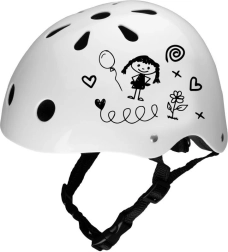 Ein tolles Extra ist die Möglichkeit zur individuellen Gestaltung – Kinder können den Helm mit Filzstiften oder Buntstiften bemalen und so ein einzigartiges Design schaffen. Die Aufzeichnungen lassen sich leicht abwaschen und verändern, sodass der Helm mit der Fantasie des Kindes mitwächst.