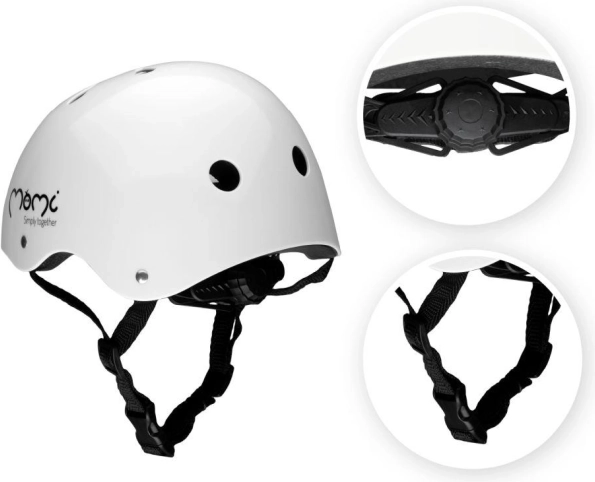 Dank 11 Belüftungsöffnungen ist der Helm sehr atmungsaktiv und der Kopf überhitzt auch an warmen Tagen nicht. Das einfache Verstellrad zusammen mit verstellbaren Kinnriemen sorgt für einen präzisen und stabilen Sitz im Bereich von 48–55 cm. Die Erfüllung der Norm EN-71 unterstreicht Sicherheit und Verarbeitungsqualität.