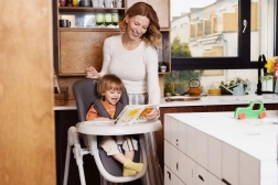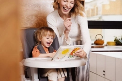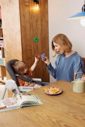 Der Kinderhochstuhl MoMi GOJO verfügt außerdem über ein zusätzliches Reduktionskissen für kleinere Kinder.