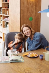Der Hochstuhl MoMi GOJO verfügt außerdem über eine zusätzliche Reduktionseinlage für kleinere Kinder.