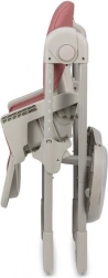 Der Stuhl hat eine doppelte Tischplatte mit zwei Einstellstufen, und wichtig: Das äußere Tablett ist spülmaschinengeeignet.