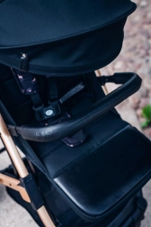 Die klassische schwarze Farbe und das dezente Muster machen den MoMi ESTELLE DAKAR in der Farbe Ginkgo unglaublich schick, elegant und zeitlos. Der Kinderwagen wird mit passender Beindecke geliefert.