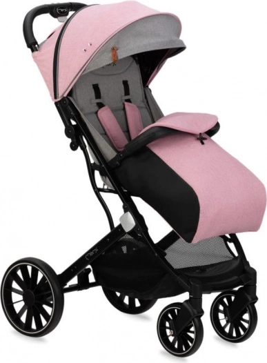 Dank der großen Räder – vorne 7", hinten 10" – hat der Kinderwagen MoMi ESTELLE DAKAR einen geländegängigen Charakter und den perfekt passenden Spitznamen DAKAR erhalten. Die grau-rosa Version ist ideal für Ausflüge mit Ihrer kleinen Prinzessin.