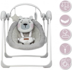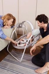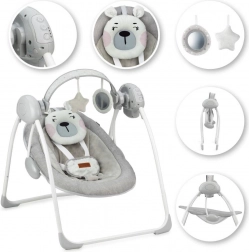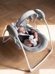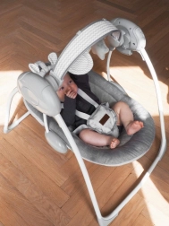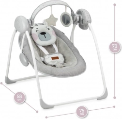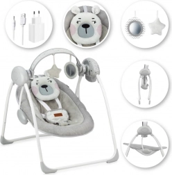 Die Sitzbelastbarkeit ist geeignet von Geburt an bis 9 kg. Der Sitz kann in 3 Neigungspositionen eingestellt werden, das Schaukeln bietet 5 verschiedene Geschwindigkeiten. Die Schaukel wird mit Batterien betrieben – diese halten bis zu 180 Stunden. Die Konstruktion ist sehr stabil, hat rutschfeste Füße und der Sitz ist mit einem 5-Punkt-Gurt mit verdeckter Schnalle ausgestattet.