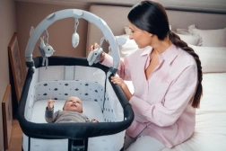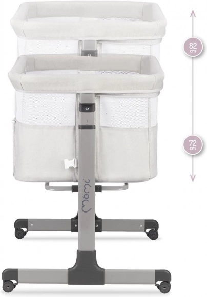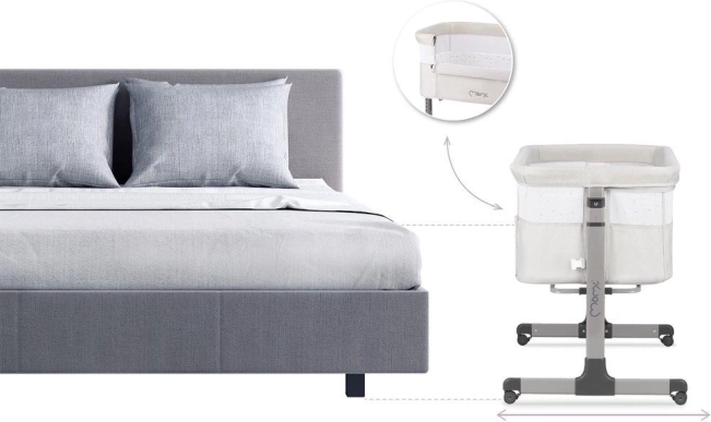 - Mit der sechsfachen Höhenverstellung stellen Sie das Babybett auf die passende Höhe ein, halten Ihr Kind in Ihrer Nähe und sorgen für Komfort.
