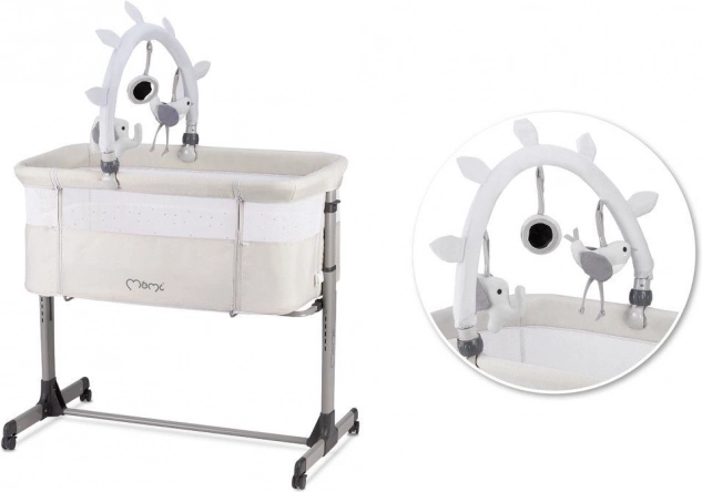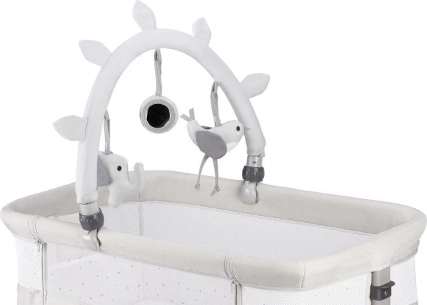 - Zum Set des Babybettchens gehört ein Spielbogen mit Spielzeug, der die sensorische Entwicklung Ihres Kindes deutlich fördert. Unterstützen Sie die Entwicklung Ihres Babys und helfen Sie ihm, dank verschiedener Spielzeuge neue Formen und Farben zu entdecken.