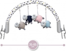 - Universelle Halterung, die den Einsatz des Spielbogens unter verschiedenen Umständen ermöglicht und eine einfache Montage z. B. am Bettchen, an der Wippe, am Kinderwagen oder am Kindersitz erlaubt