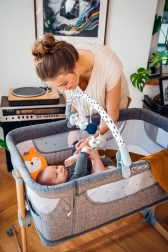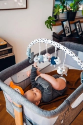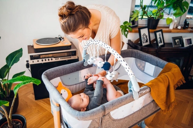 Der Spielbogen mit Spielzeugen MoMi JOY ist in vielen Situationen hilfreich. Dank seiner universellen Halterung können Sie ihn verwenden: