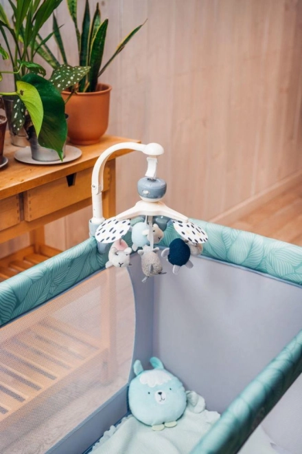 MoMi KIKI ist ein praktisches Musik-Mobile, das mit Ihrem Baby mitwächst – zu Hause und unterwegs. Dank der universellen Befestigung kann es im Handumdrehen am Holzgitterbett, an ausgewählten Reisebetten, am Kinderwagen oder an der Babyschale angebracht werden. Gedeckte Farben wirken unaufdringlich und die sanften Melodien mit Weißem Rauschen unterstützen ein ruhiges Einschlafen.