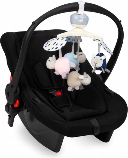 Befestigen Sie das Mobile über dem Kinderbett mit einer Klemme oder am Kinderwagen und an der Babyschale mittels Klettband. Eine Lösung für zu Hause und unterwegs.