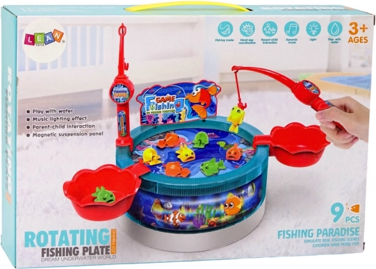 Nach dem Einschalten beginnen die Fische, sich über den See zu bewegen und schaffen eine dynamische, aufregende Umgebung, die kleine Angler begeistert. Mit der Angelrute können Kinder die Fische fangen, was ihre manuellen Fähigkeiten und die motorische Koordination fördert. Eine angenehme Melodie begleitet das Spiel, verleiht ihm Charme und Spaß und sorgt für eine freundliche Atmosphäre.
