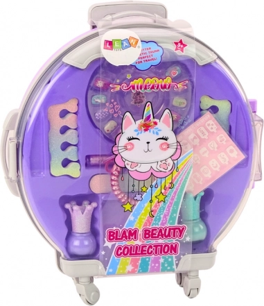 Dieses tragbare Beauty-Set in einem niedlichen lila Koffer erfreut alle kleinen Stylistinnen. Kinder können Nägel lackieren, Sticker kleben und ein leichtes Make-up ausprobieren – alles übersichtlich verstaut im kompakten Koffer mit Rollen und Griff. Eine tolle Wahl für Ausflüge, Besuche und das tägliche Spielen.
