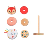 Mit der Stapelpyramide Fuchs Alice können Kinder ein kreatives Spiel genießen, das ihre motorischen Fähigkeiten fördert. Sie besteht aus verschiedenen Teilen, darunter 4 Holzteilen und 2 Textilteilen sowie einer Holzbasis. Jedes Spiel mit dieser Pyramide ist anders, dank der Möglichkeit, die Teile unterschiedlich zusammenzusetzen.