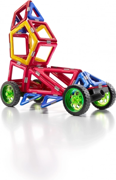 30 magnetische geometrische Formen, 4 Räder, 2 Fahrgestelle