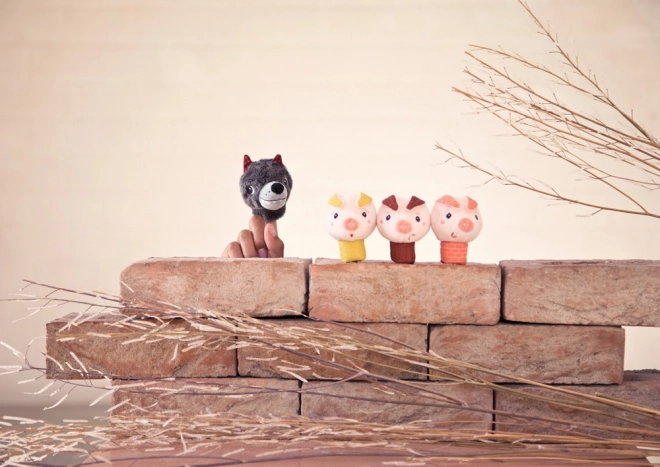 4 Fingerpuppen: Wolf und drei Schweinchen