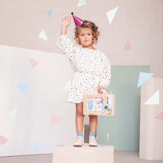 Entdecken Sie die erste musikalische Spielzeugbox, die Kinder ab 10 Monaten begeistert und fördert. Nach einem schnellen Drehen des Knopfes erklingt eine fröhliche Melodie, bewegliche Bilder setzen sich in Gang und Kinder trainieren Feinmotorik sowie sensorische Wahrnehmung. Ein leichter Griff für einfaches Tragen, hochwertige Materialien mit FSC-Zertifizierung und eine abwaschbare Oberfläche machen die Spieluhr zur idealen Wahl für den täglichen Spielspaß.