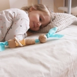 Die Kombination aus naturbelassenem Holz und weichem Textil liegt gut in der Hand und ist widerstandsfähig für den Alltagsspielbetrieb.